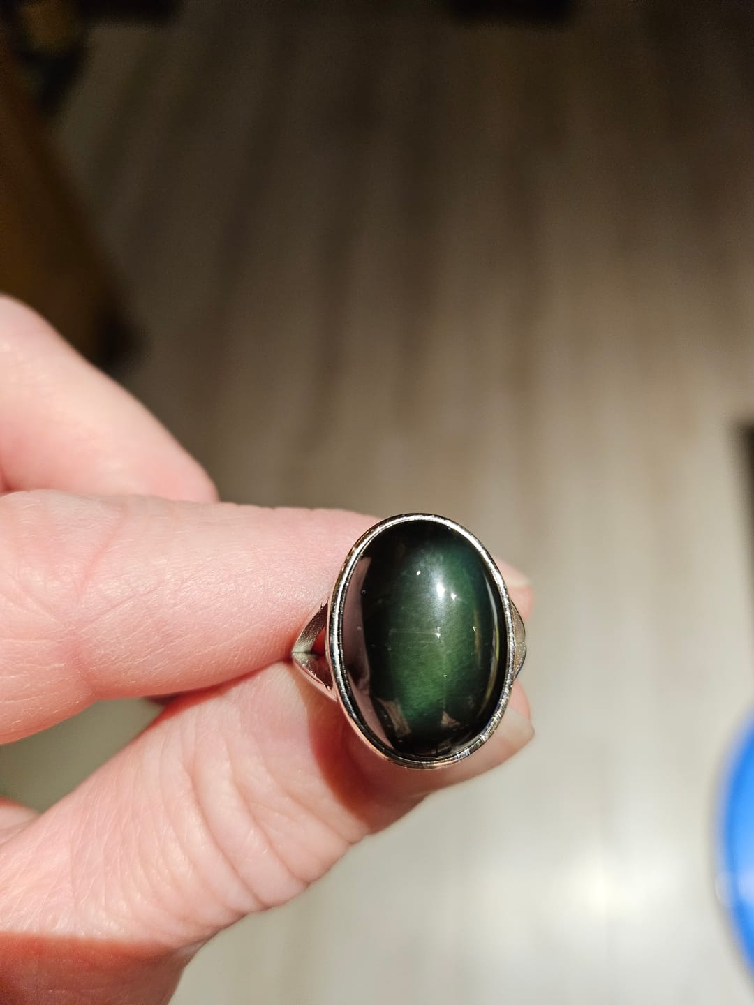 Depuis que je l'ai reçue, je la porte tous les jours. Je me sens apaisée, plus sereine et moins réactive aux propos qui m'affectent.Au soleil, je voie son œil et son reflet vert. Elle est magnifique .
