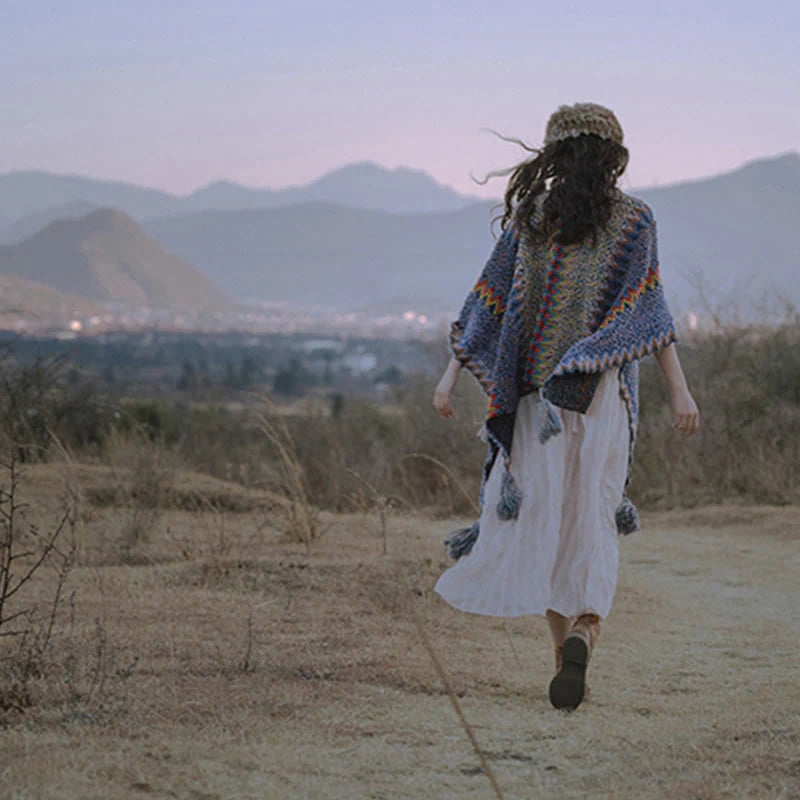 Châle Tibétain Tricoté Doux et Chaud avec Franges – Écharpe Manteau d’Hiver