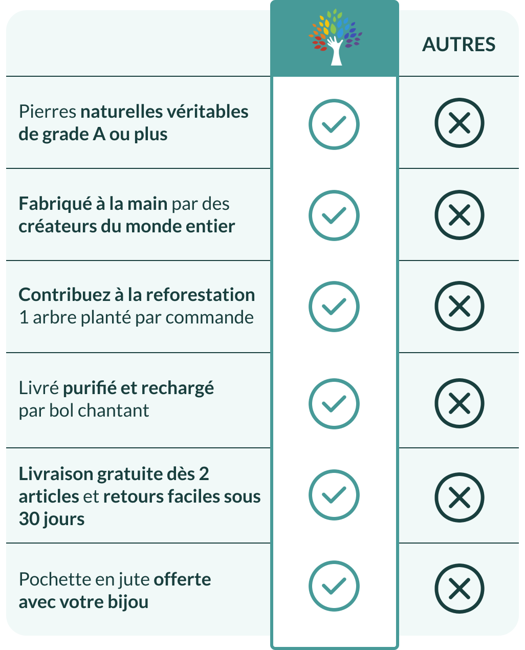 Chaque bijou que nous vous envoyons est purifié et rechargé avec soin, débordant d'énergies positives dès l'ouverture de votre colis.